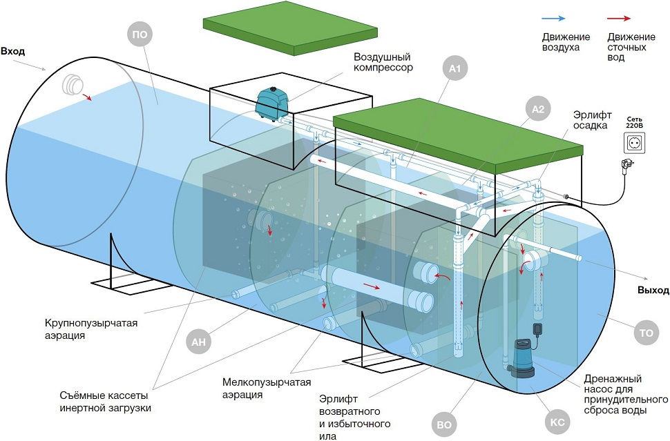 | Тип очистного устройства | септик с аэрацией |